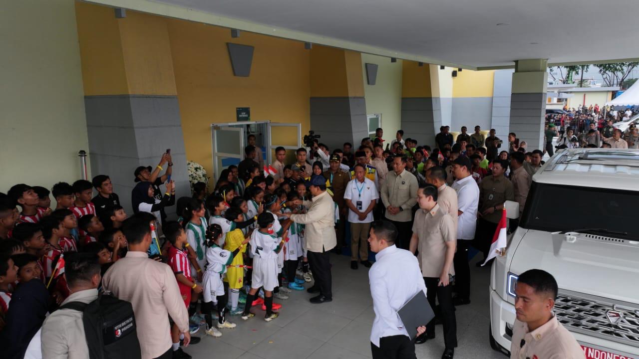 Tak hanya itu, beberapa anak yang berada di barisan terdekat juga berkesempatan untuk berjabat tangan dengan Presiden. Momen kedekatan ini menunjukkan harapan besar bagi masa depan bangsa untuk generasi muda khususnya di bidang olahraga sepak bola.