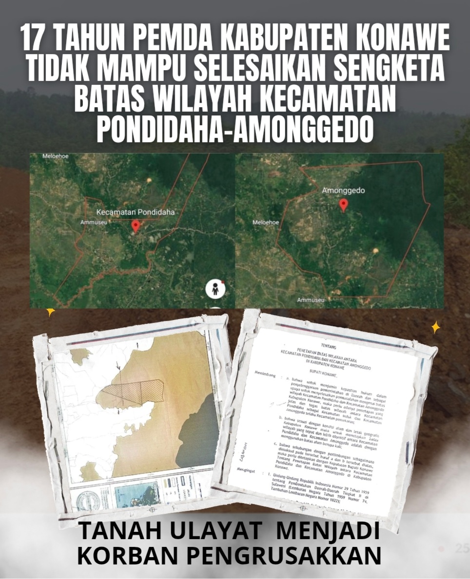 Ketidakjelasan tapal batas wilayah ini juga telah memicu berbagai persoalan serius, termasuk eksploitasi sumber daya alam (SDA) berupa nikel, Batu Crome dan Batuan lainnya di atas lahan hak ulayat masyarakat Pondidaha seluas kurang lebih 2.700 hektar.