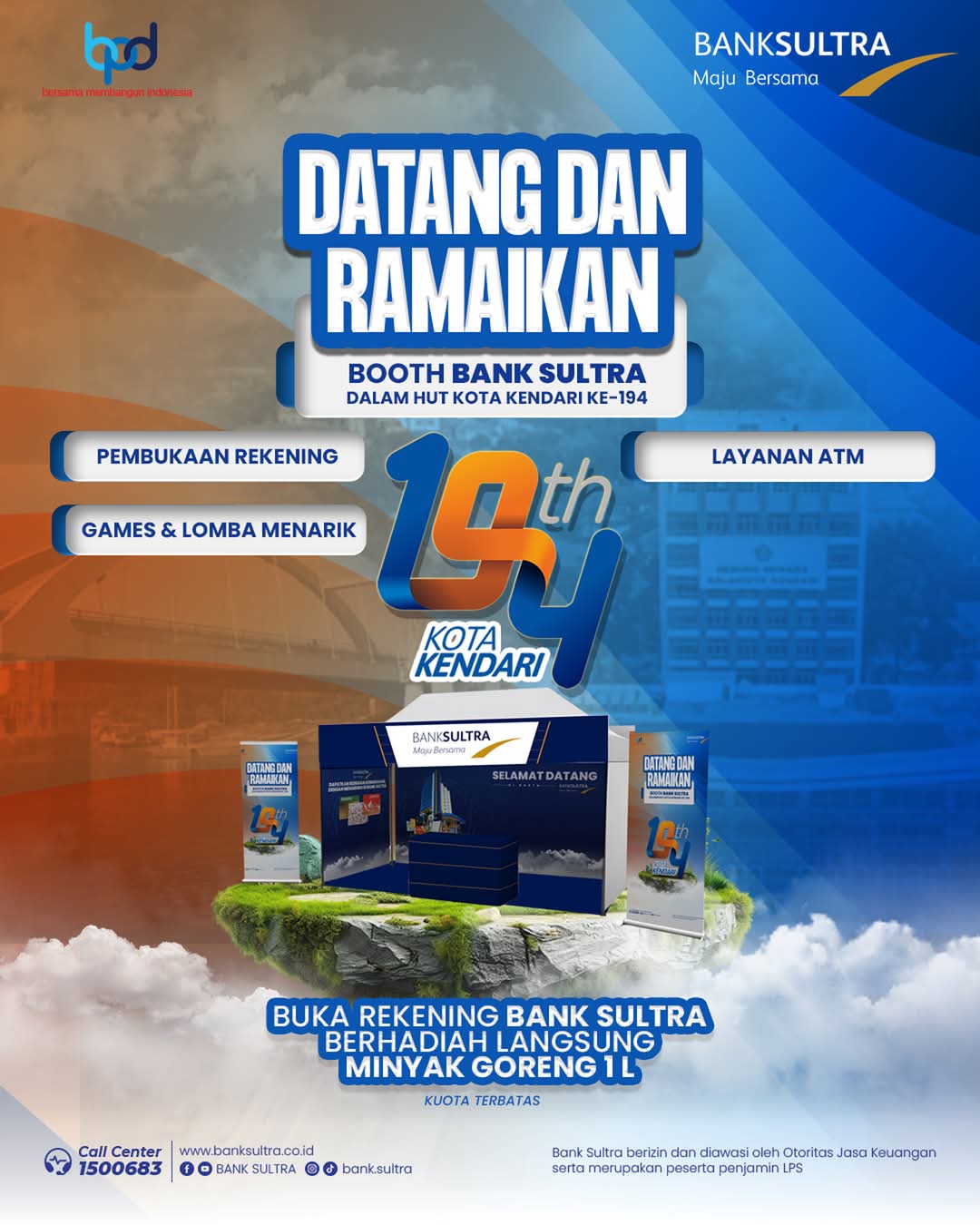 Bank Sultra mengajak seluruh warga Kota Kendari untuk mengunjungi booth dan menikmati berbagai kegiatan menarik di Kendari Expo 2025, bersama-sama merayakan semangat pembangunan dan kebersamaan.