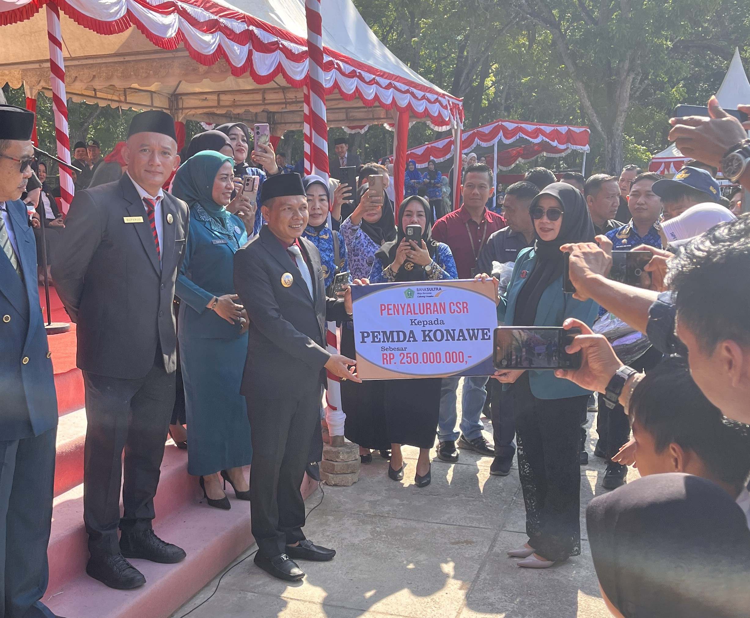 Pada hari yang sama, Bank Sultra juga menyalurkan program Tanggung Jawab Sosial Perusahaan (CSR) senilai Rp250 juta, berupa pengadaan seragam dan tas sekolah bagi siswa-siswi kurang mampu di tingkat SD dan SMP se-Kabupaten Konawe. Penyerahan dilakukan secara simbolis oleh Kepala Bank Sultra Cabang Unaaha kepada Bupati Konawe pada Upacara Hari Kesaktian Pancasila di Halaman Kantor Bupati Konawe.