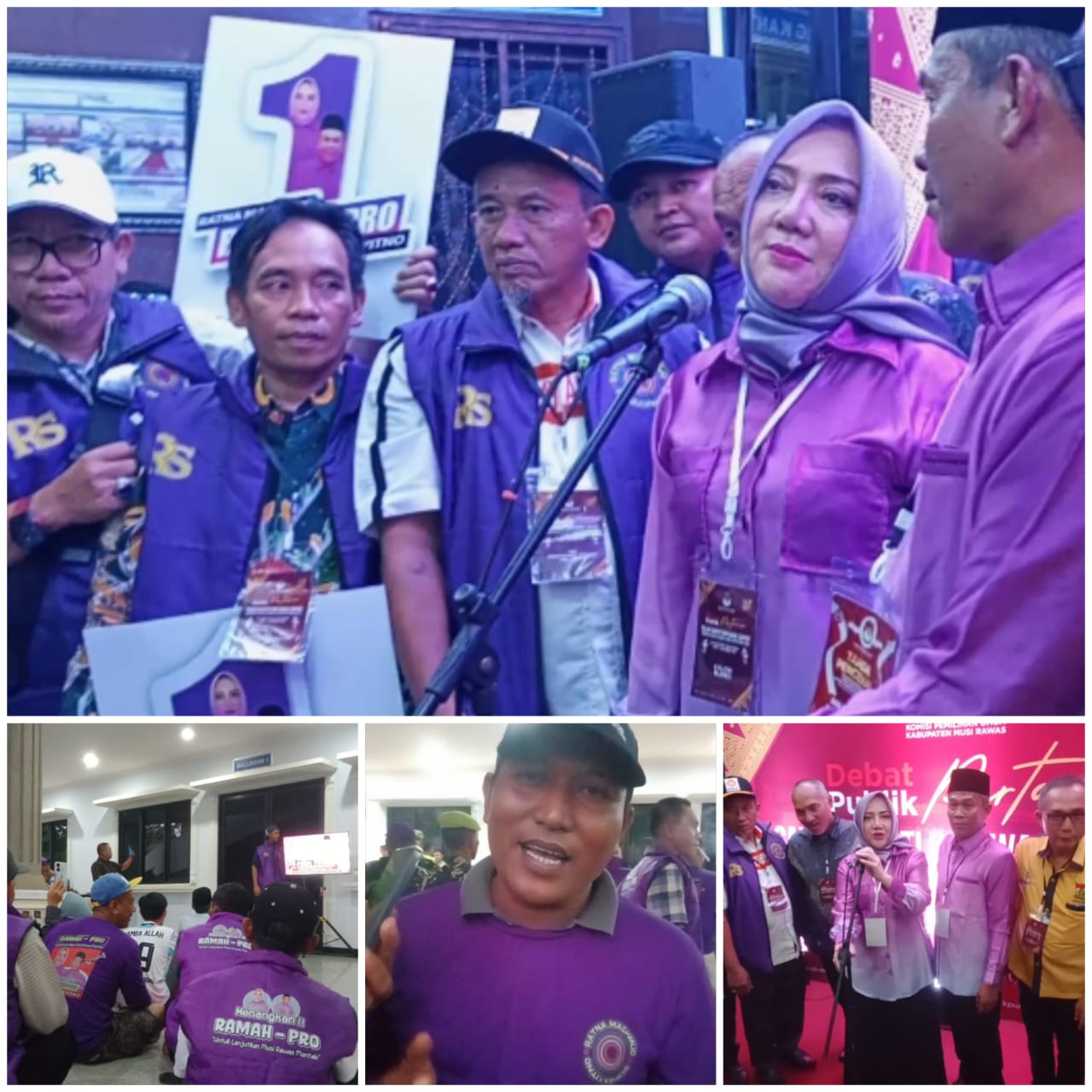 Pendukung nomor urut 01 langsung menyaksikan melalui Live streaming di stasiun televisi Republik Indonesia (TVRI), meskipun diguyur hujan deras antusiasme pendukung dari nomor urut 01 tetap semangat ingin melihat langsung debat yang di selenggarakan KPUD Musi Rawas di gedung Bagas Raya.
