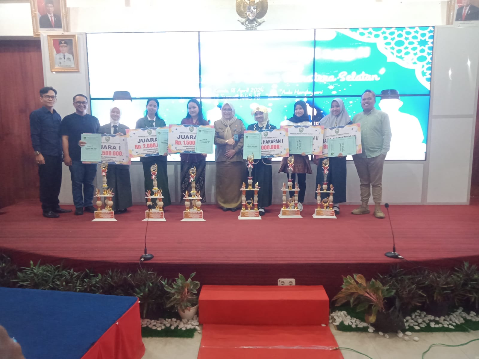 Dari perlombaan tersebut terpilih 10 peserta, dan terpilih 6 peserta yang menjadi pemenang dengan kategori Juara 1, 2, dan 3. Serta Juara harapan 1, 2, dan 3, Penyerahan penghargaan juara lomba paduan suara tingkat SMA dan SMK provinsi Sumsel, di gelar di aula Disdik provinsi Sumsel, Senin (22/04/2024).