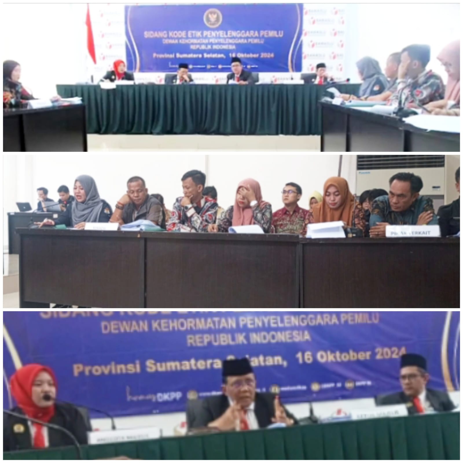 Portalterkini.com – Palembang, Dewan Kehormatan Penyelenggara Pemilu (DKPP) menggelar sidang pemeriksaan terhadap dugaan pelanggaran Kode Etik Penyelenggara Pemilu (KEPP) untuk perkara Nomor 185-PKE-DKPP/VIII/2024 di Kantor Bawaslu Provinsi Sumatera Selatan, Palembang, Rabu (16/10/2024).