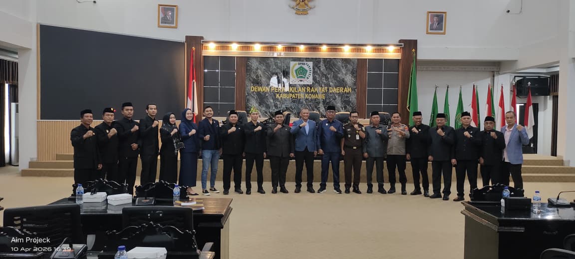 PORTALTERKINI.COM, KONAWE – Dewan Perwakilan Rakyat Daerah (DPRD) Kabupaten Konawe menggelar Rapat Paripurna dalam rangka penyerahan rekomendasi hasil pembahasan Laporan Keterangan Pertanggungjawaban (LKPJ) Bupati Konawe Tahun Anggaran 2025, Jumat (10/4/2026), di Ruang Rapat Paripurna Gedung H. Abd. Samad.