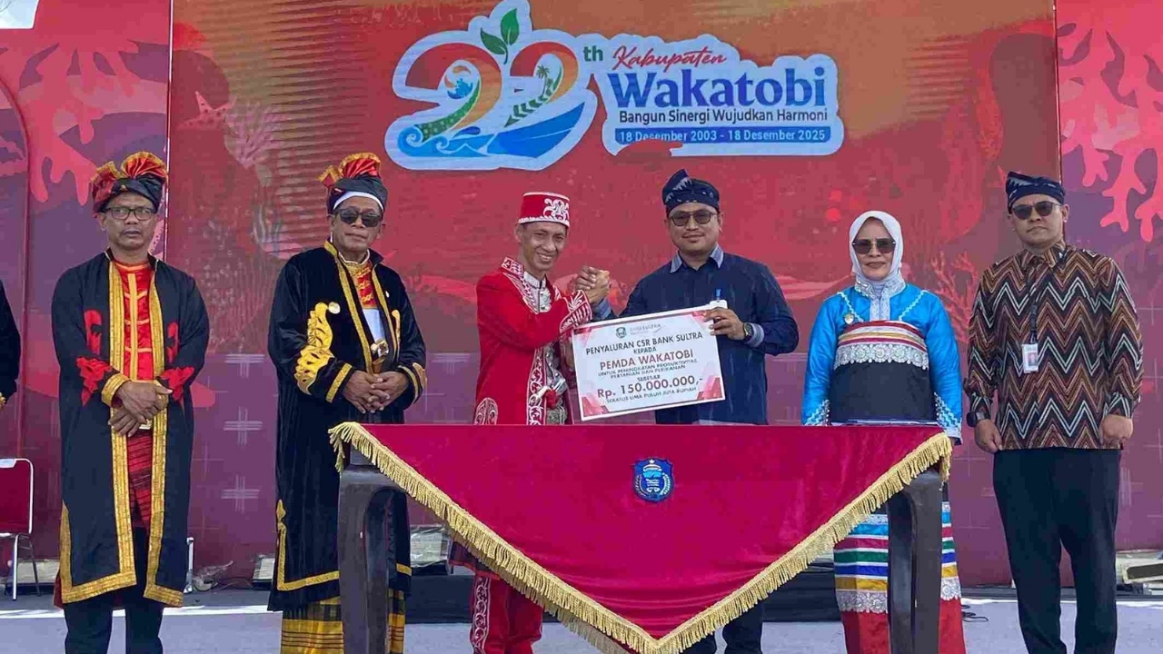 Sementara itu, di tempat berbeda, Bank Sultra juga menunjukkan kepeduliannya terhadap masyarakat pesisir di Kabupaten Wakatobi. Penyerahan CSR senilai Rp 150 juta dilakukan seusai upacara peringatan HUT ke-22 Kabupaten Wakatobi yang digelar di Alun-Alun Merdeka, Wangi-wangi, Rabu (18/12/2025).