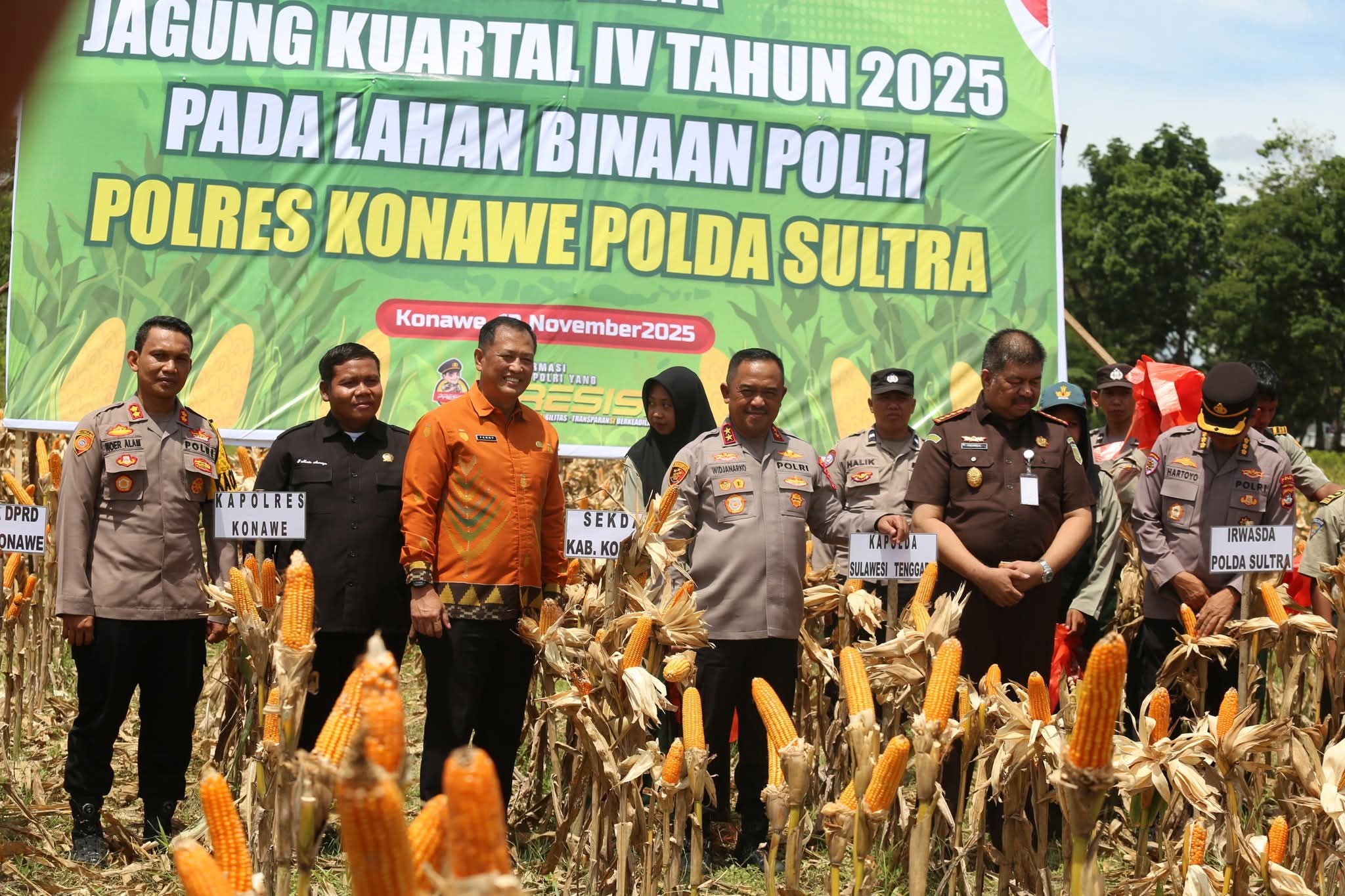 Kepolisian Daerah Sulawesi Tenggara (Polda Sultra) bersama Pemerintah Daerah Kabupaten Konawe terus memperkuat sinergi dalam mendukung program ketahanan pangan nasional. Salah satunya diwujudkan melalui kegiatan Panen Raya Jagung kuartal IV tahun 2025 di lahan binaan Polres Konawe, Kamis (13/11/2025).