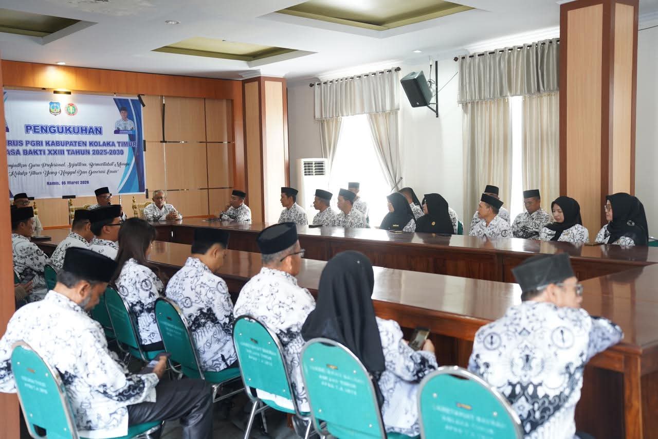 Portalterkini.com, Koltim, – Pelaksana Tugas (Plt.) Bupati Kolaka Timur (Koltim), H.Yosep Sahaka, S.Pd., M.Pd., menghadiri sekaligus memberikan sambutan pada kegiatan Pengukuhan Pengurus Persatuan Guru Republik Indonesia (PGRI) Kabupaten Koltim Masa Bakti XXIII Tahun 2025–2030 yang dilaksanakan di Aula Lantai II Kantor Bupati Koltim, Desa Lalingato, Kecamatan Tirawuta, Kamis (05/03/2026).