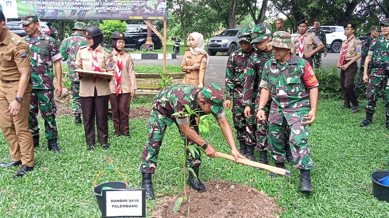 Lanjutnya,Tetapi TNI/Polri telah mengproklamirkan di tahun 2024 ramah terhadap lingkungan maka dari itu mari kita berikan apresiasi ,Kita sudah mendengar laporan dari Dandim 0418/Plg kita ingin kota Palembang ,kita tahu areal sangat terbatas apalagi kota besar maka itu jawabannya kita harus menggalakkan penanaman pohon karena ini penting buat kesehatan kita .