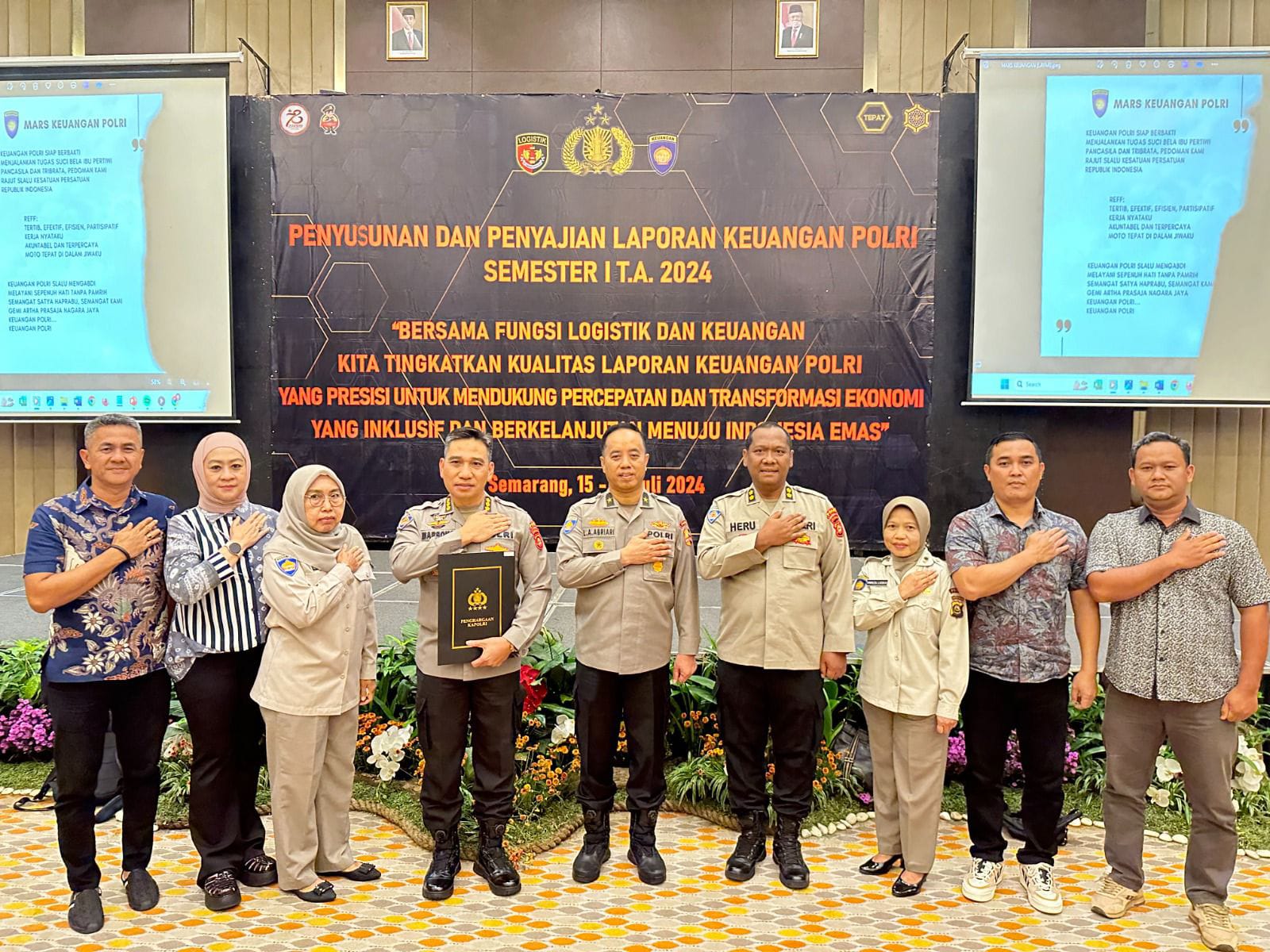 Penghargaan Kapolri tersebut diterima saat pelaksanaan rapat rekonsiliasi serta pemutakhiran data BMN dan Keuangan Polri Semester I tahun 2024 di hotel Novotel Semarang, Kamis (18/7/2024).