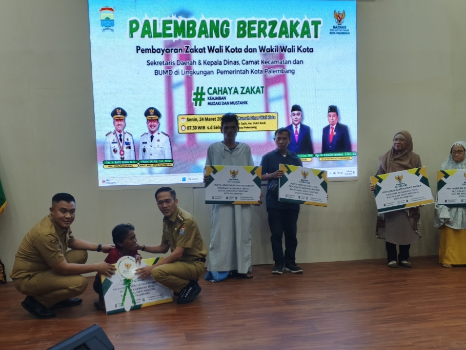 Portalterkini.com, Palembang – Keteladanan Zakat Pimpinan, Palembang Berzakat bersama Walikota, Wakil Walikota Palembang, Sekretaris Daerah, Kepala Dinas/Camat/BUMD/BUMS di wilayah Pemerintahan Kota Palembang sekaligus Penyerahan Bukti Setor Zakat dan Penyerahan Secara Simbolis 5 Program Unggulan BAZNAS Kota Palembang.