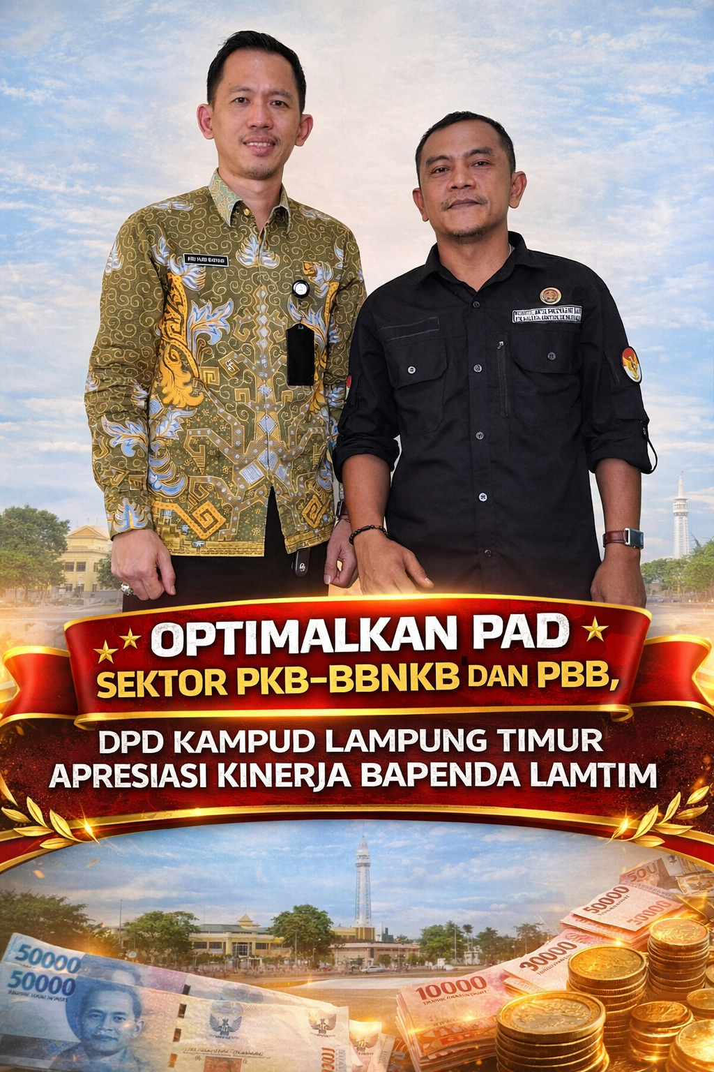 Dukungan dan apresiasi DPP KAMPUD kepada Bapenda Kabupaten Lampung Timur disampaikan langsung saat kunjungan Ketua DPD KAMPUD Kabupaten Lampung Timur, Fitri Andi didampingi Sekretaris Ibnu Hasan yang diterima langsung oleh Kepala Bidang Penagihan dan Pengawasan Bapenda Kabupaten Lampung Timur, Abu Yazid Bustami, S.E, M.M di kantor Bapenda Kabupaten Lampung Timur, pada Senin (6/3/2026).