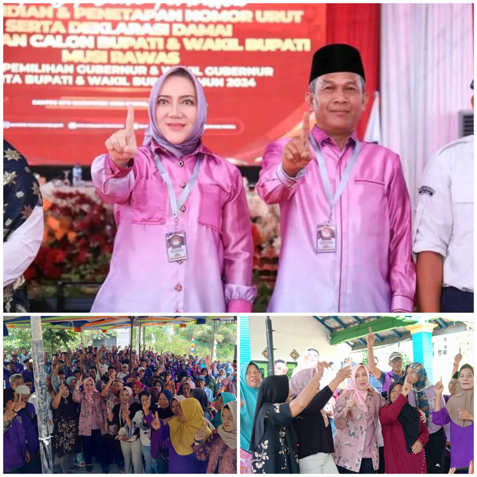 “Jika masih ingin mendapatkan santunan kematian, seragam sekolah gratis, umroh gratis 150 orang per tahun, berobat gratis hanya menggunakan KTP, satu desa satu ambulance, jalan mulus ke desa dan satu rumah tahfiz di setiap kecamatan maka pilihlah nomor urut 01 untuk Musi Rawas, Mantab, Berkelanjutan,” Ujarnya