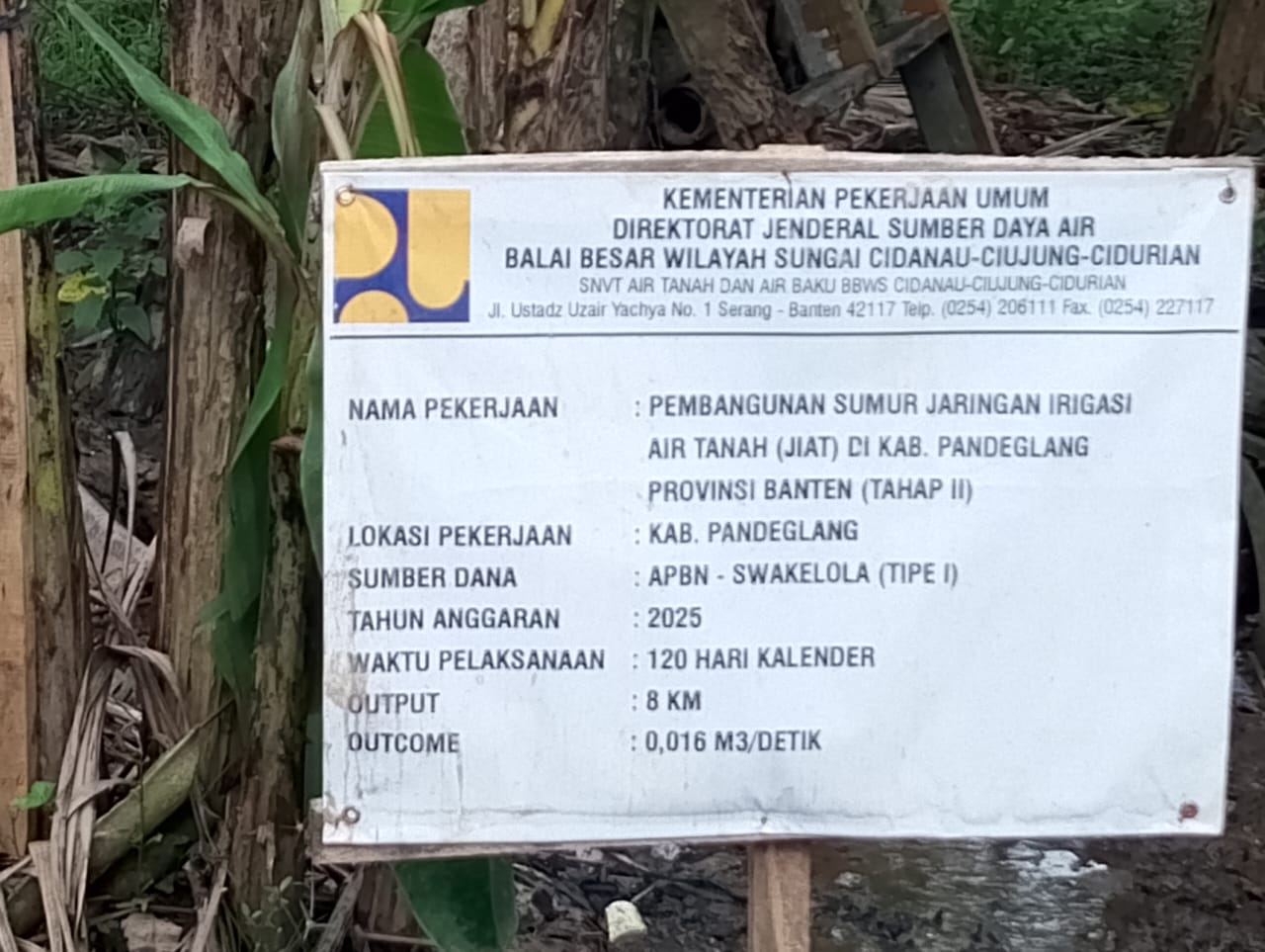 PORYALTERKINI.COM, Pandeglang, Banten – Pembangunan Jaringan Irigasi Air Tanah (JIAT) di Desa Ciherang, Kecamatan Picung, Kabupaten Pandeglang, yang dikelola oleh Kementerian Pekerjaan Umum Direktorat Sumber Daya Air Balai Besar Wilayah Sungai Cidanau, Ciujung, Cidurian, dirasa kurang transparan oleh masyarakat. Proyek yang dilaksanakan secara swakelola tipe 1 ini bahkan tidak menampilkan nominal anggaran di papan informasi yang harusnya tersedia untuk publik.