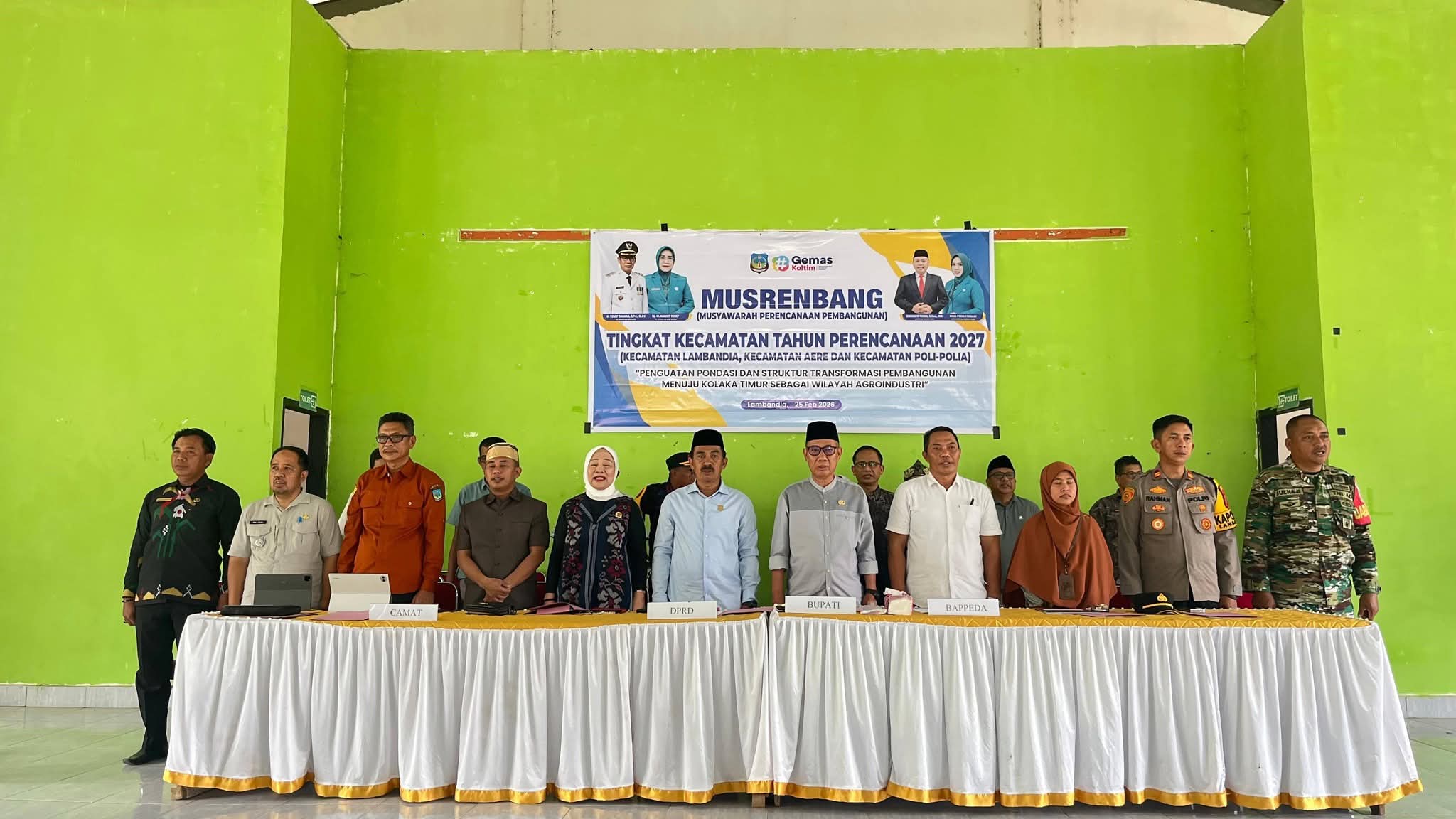 Portalterkini.com, Koltim,  – Pemerintah Daerah (Pemda) Kabupaten Kolaka Timur (Koltim) kembali menggelar Musyawarah Perencanaan Pembangunan (Musrenbang) Tingkat Kecamatan Tahun Perencanaan 2027 yang meliputi Kecamatan Lambandia, Kecamatan Aere dan Kecamatan Poli-Polia, bertempat di Aula Kantor Kecamatan Lambandia, Jumat (27/02/2026).