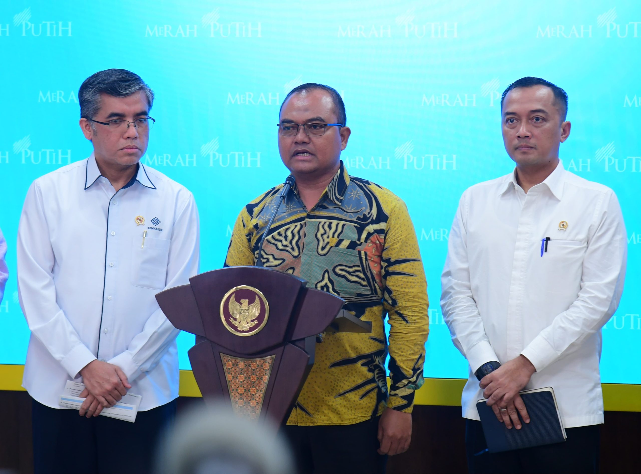 Turut hadir dalam keterangan pers tersebut adalah Menteri Sekretaris Negara Prasetyo Hadi, Menteri BUMN Erick Thohir, Menteri Ketenagakerjaan Yassierli, Koordinator Serikat Pekerja Sritex Group Slamet Kaswanto, dan perwakilan tim kurator PT Sritex Nurma Sadiqin.
