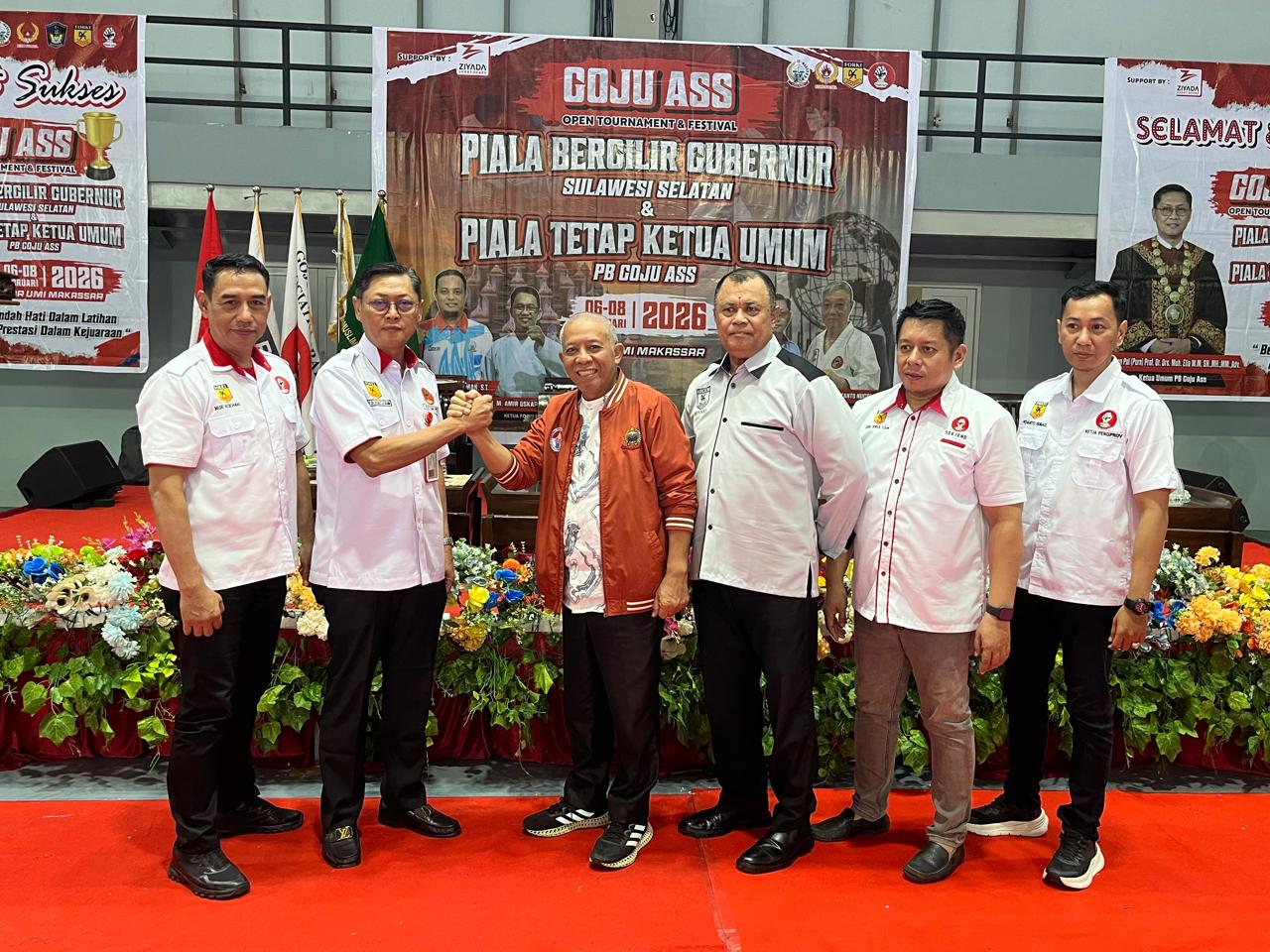 PORTALTERKINI.COM, MAKASSAR,  Kegiatan Open Tournament Piala Bergilir Gubernur Sulawesi Selatan dan Piala Tetap Ketua Umum PB Goju ASS dirangkaikan dengan pelantikan Pengurus Provinsi Goju Ryu Karate-Do Association Indonesia (Goju ASS) Sulawesi Tenggara, yang digelar di GOR Universitas Muslim Indonesia (UMI), Makassar, pada Jum’at 6 Februari 2026.