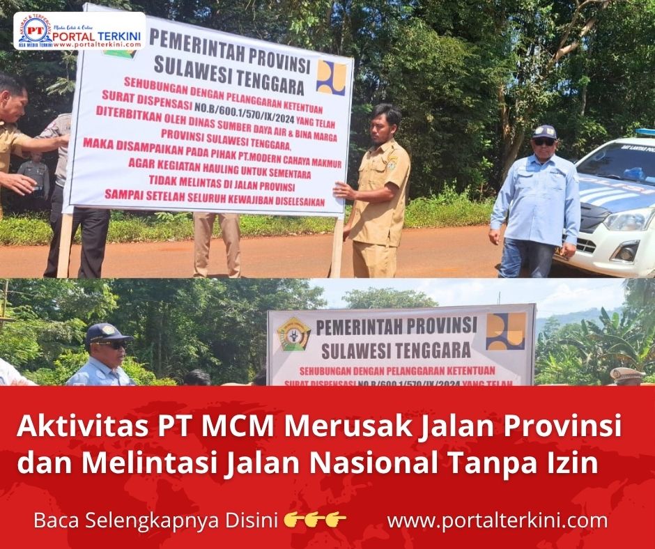 Portalterkini.com, Kendari – Pemerintah Provinsi (Pemprov) Sulawesi Tenggara (Sultra) akhirnya menutup akses hauling perusahaan tambang milik PT Modern Cahaya Makmur (MCM) di Kecamatan Puriala, Kabupaten Konawe yang diduga telah melanggar aturan.