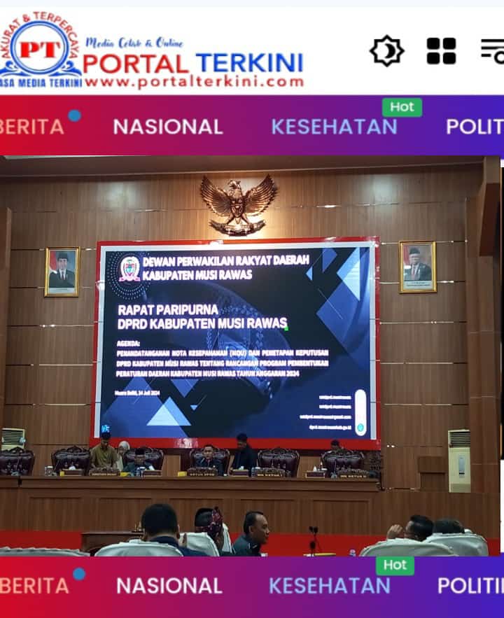 Portalterkini.com – Musi Rawas, Sidang Rapat Paripurna Dewan Perwakilan Rakyat Daerah (DPRD) Kabupaten Musi Rawas (Mura), Provinsi Sumatera Selatan (Sumsel), dengan Agenda penandatanganan Nota kesepahaman (Muo) dan penetapan keputusan DPRD Kabupaten Mura, tentang rencana Program pembentukan Peraturan Daerah Kabupaten Musi Rawas Tahun Anggaran 2024.
