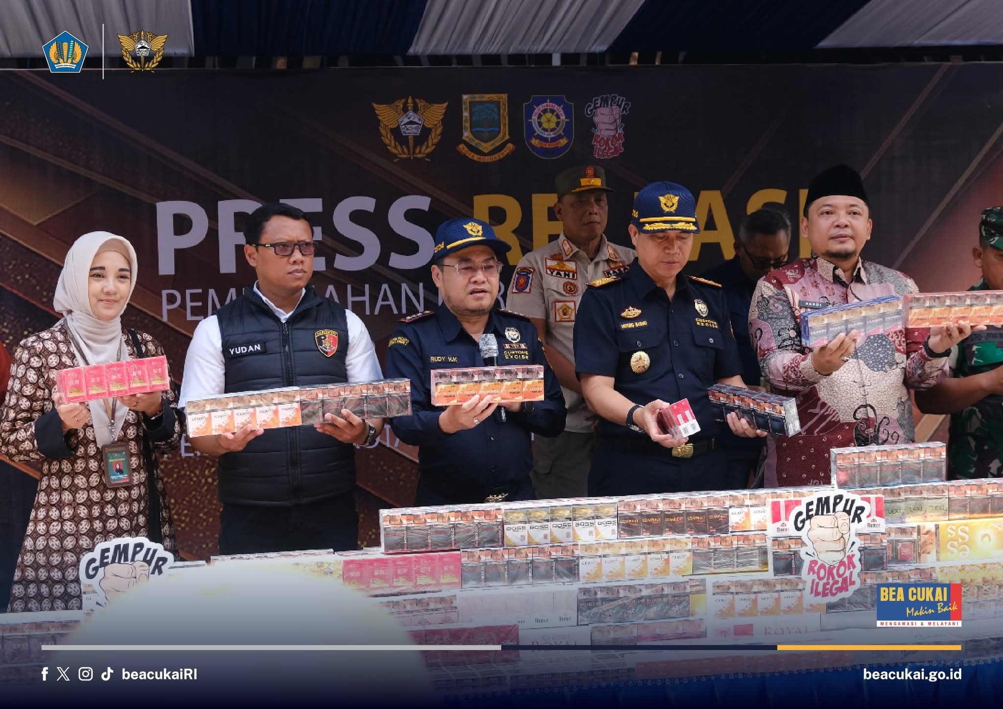 “Tercatat jutaan rokok ilegal hasil penindakan atas pelanggaran di bidang cukai dimusnahkan sebagai langkah konkret dan bukti keseriusan dalam memerangi BKC ilegal di wilayah kerja Bea Cukai Sidoarjo,” ujar Rudy.