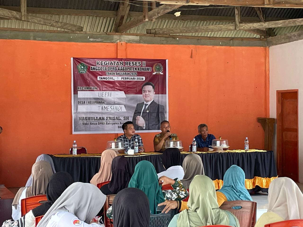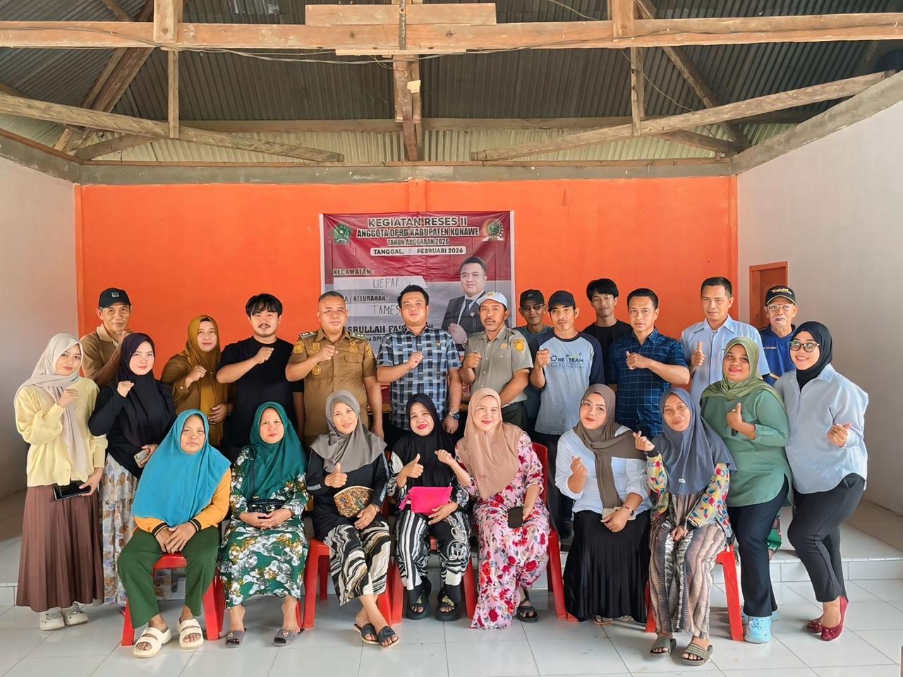 PORTALTERKINI.COM, Konawe, – Wakil Ketua II Dewan Perwakilan Rakyat Daerah (DPRD) Kabupaten Konawe, Nasrullah Faizal, S.H., melaksanakan kegiatan Reses di Desa Tamesandi, Kecamatan Uepai, Kabupaten Konawe, Selasa (10/2/2025).