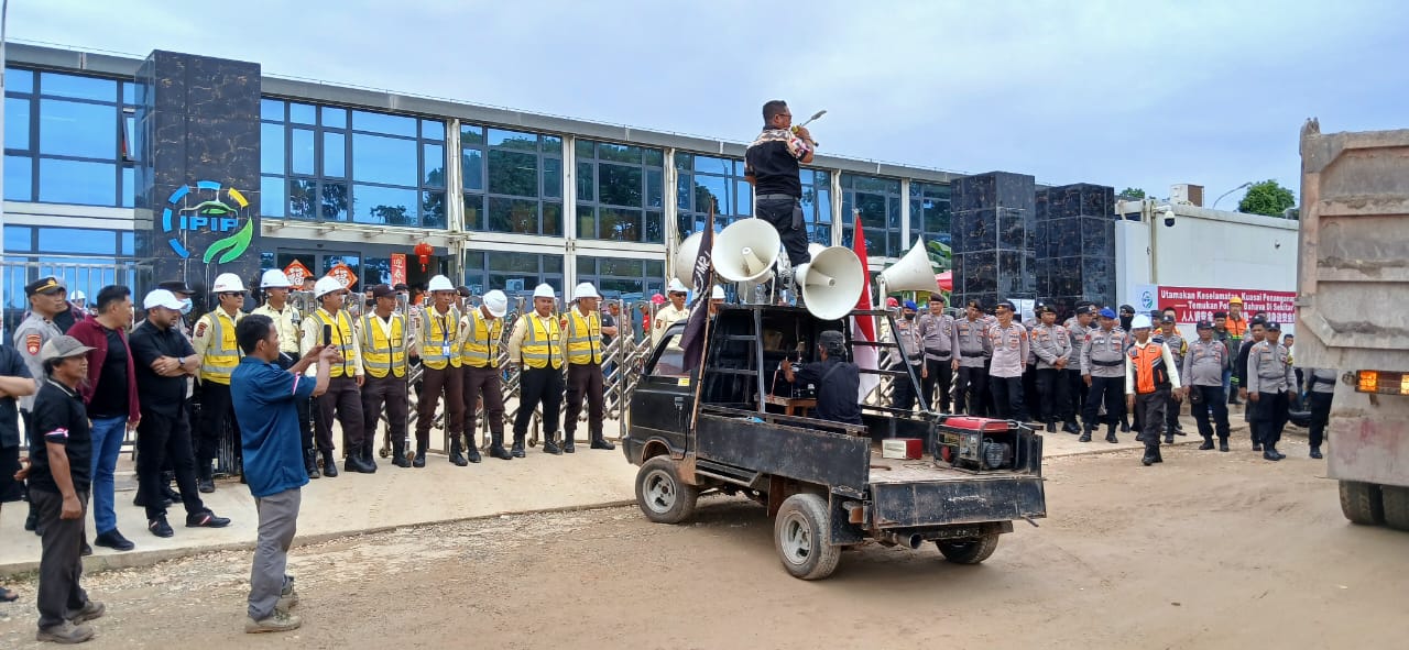 Dalam orasinya, mengecam keras tindakan PT IPIP bersama kroninya yang diduga telah melakukan penyerobotan lahan milik warga Dusun 2 Lawania secara sepihak dan diduga menjadikan Stock File Ore tanpa koordinasi dan persetujuan dari warga / pemilik dan tanpa proses hukum yang sah.
